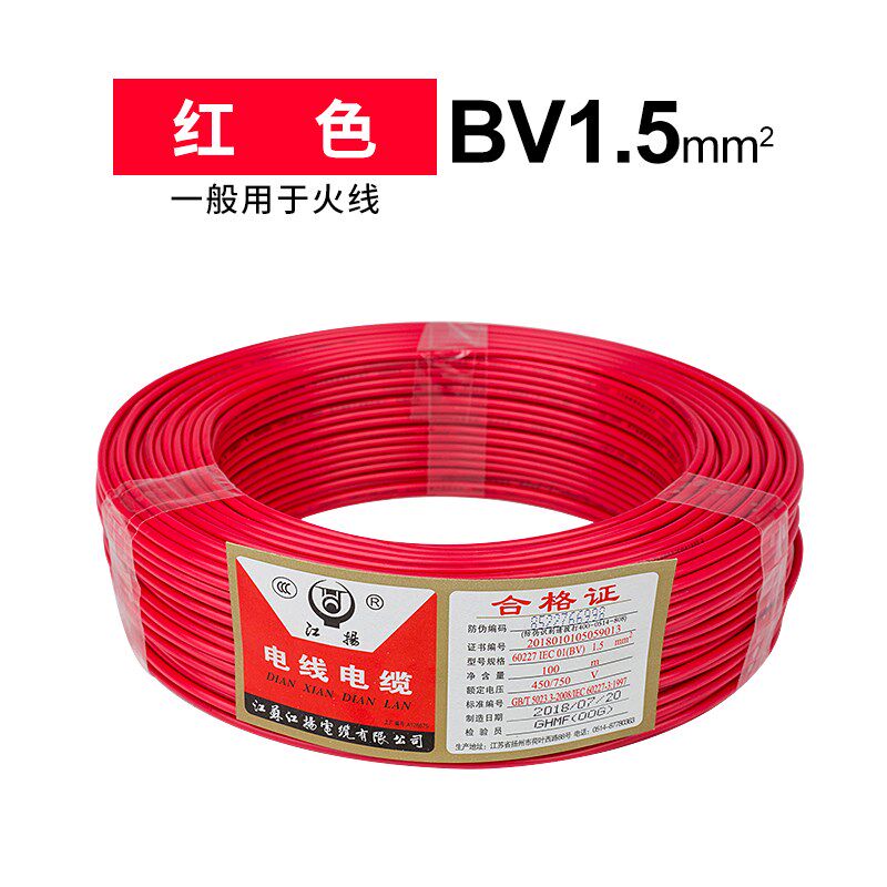 江扬电线2.5平方铜芯单股电线 BV1.5/2.5/4/6家装家用电线 包邮热门设计联盟服务商