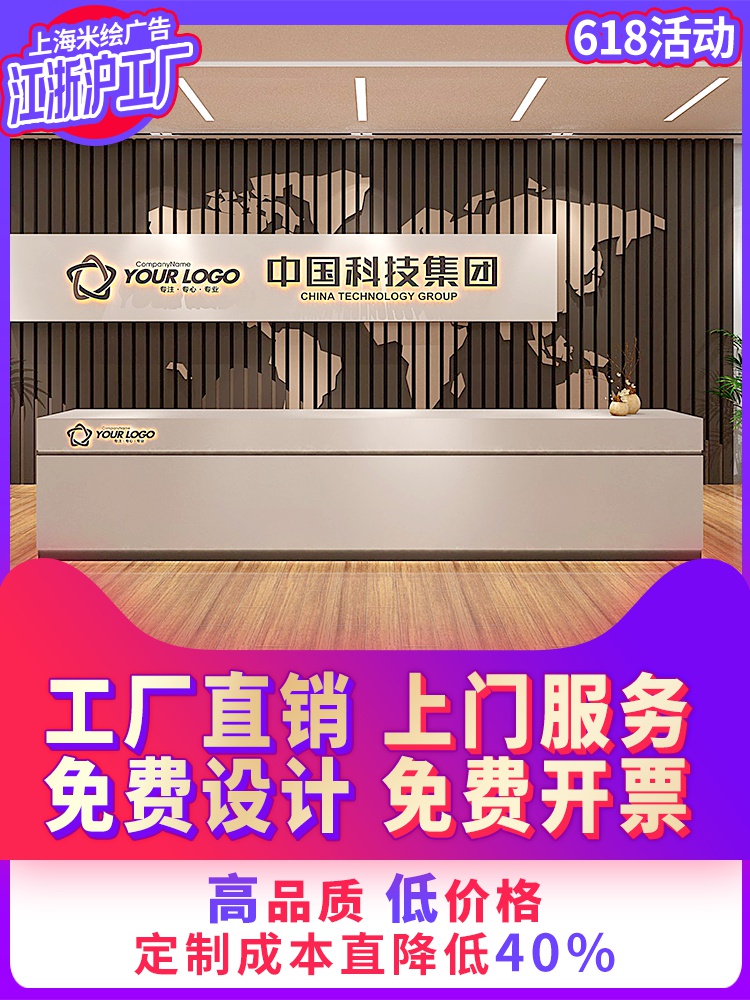 公司企业前台吧台设计定做3d立体logo字招牌名称形象贴纸装饰墙贴热门设计联盟服务商