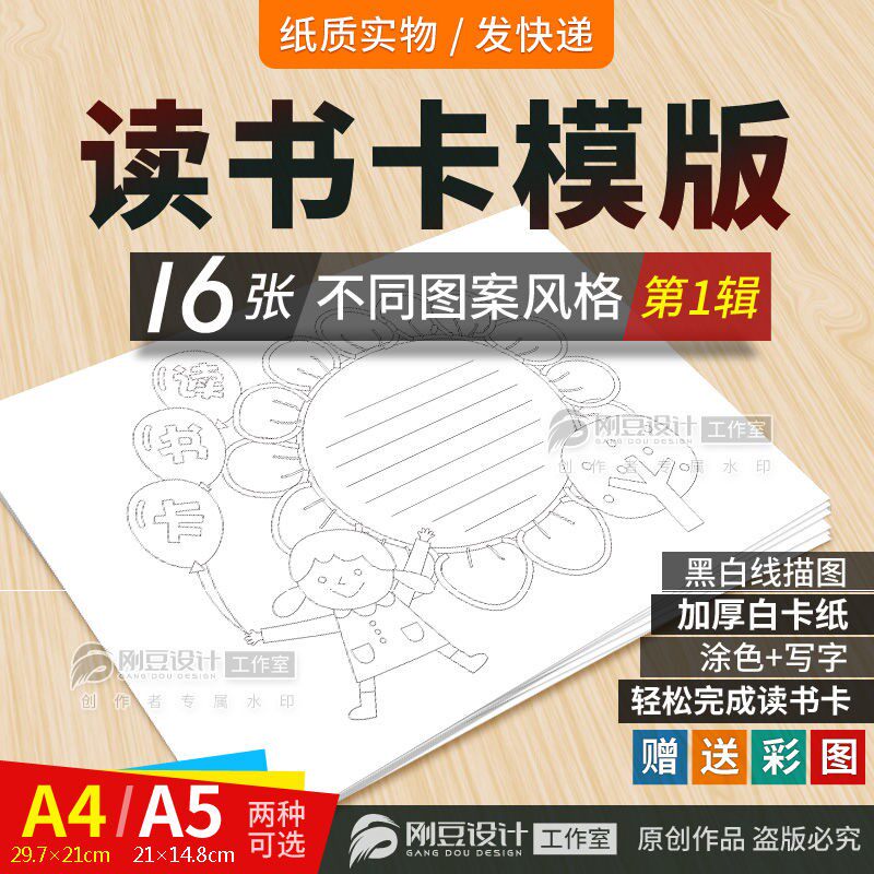 读书卡片模板读书卡模板共16张A4A5黑白线描涂色白卡纸打印阅读感热门设计联盟服务商