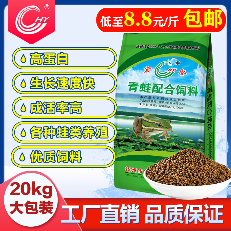 厂家直销青蛙饲料蝌蚪粉料养殖牛蛙青蛙虎纹蛙黑斑蛙膨化饲料40斤热门设计联盟服务商