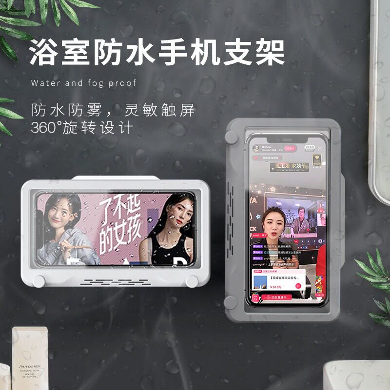 浴室防水手机盒免打孔卫生间墙壁挂香薰厨房置物架可旋转追剧神器热门设计联盟服务商