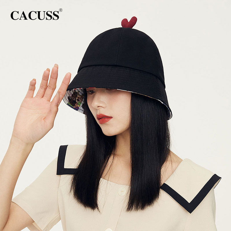 帽子女渔夫帽春夏新款撞色小爱心设计网眼透气遮阳帽甜美可爱盆帽热门设计联盟服务商