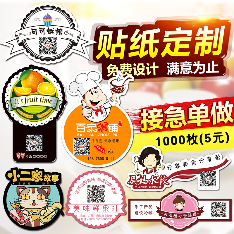 外卖贴纸标签广告设计印刷定制作不干胶封条打包盒餐饮logo二维码热门设计联盟服务商