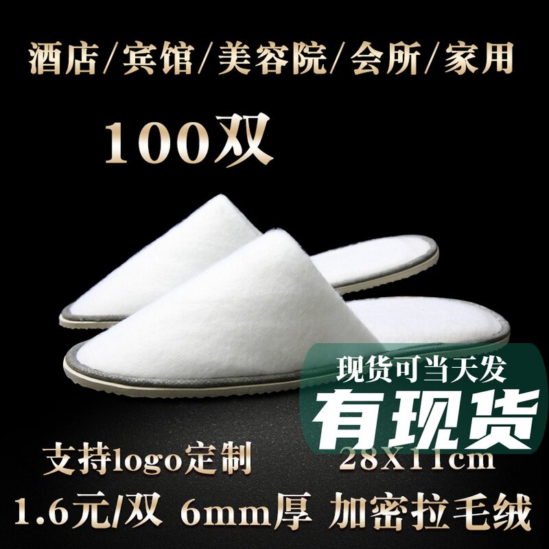 100双 一次性拖鞋五星级酒店专用高档宾馆加厚绒面防滑底美容院热门设计联盟服务商
