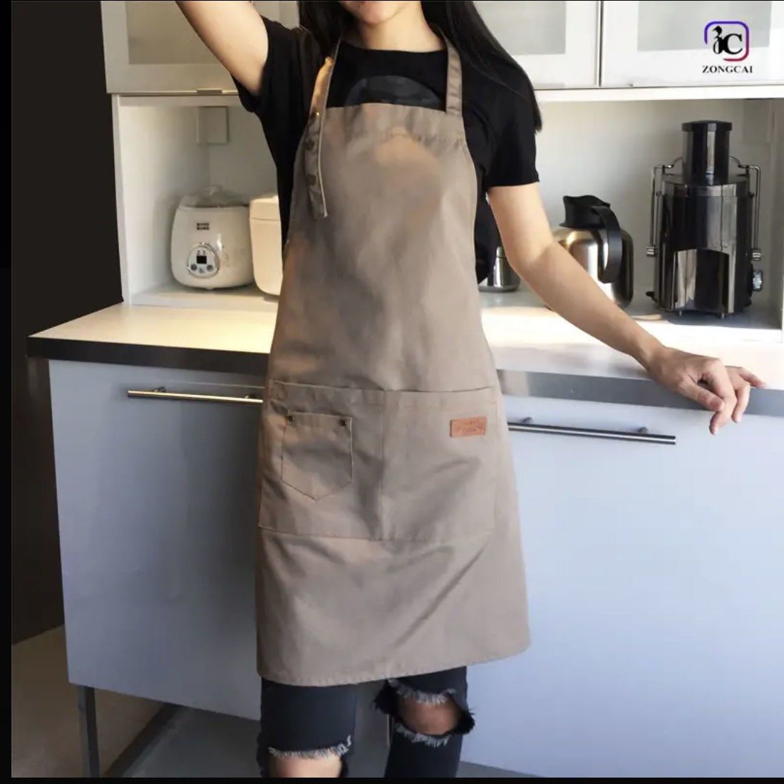 时尚挂脖围裙防水帆布牛仔厨房餐饮工作围裙定制logo耐磨耐脏热门设计联盟服务商