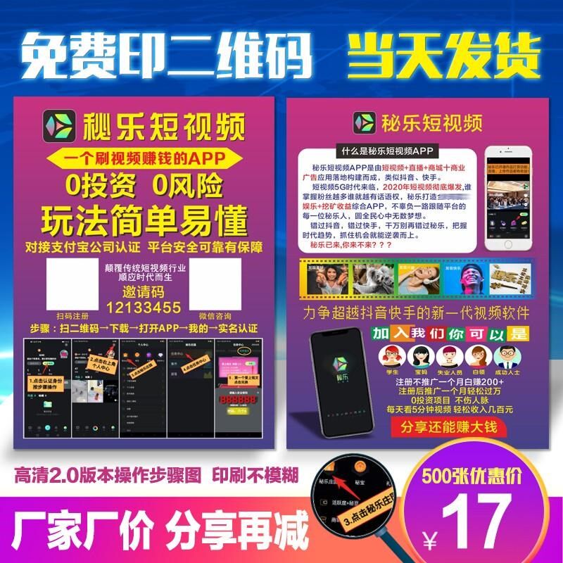 地推秘乐宣传单秘乐魔方短视频地推宣传单展架物料海报易拉宝广告热门设计联盟服务商