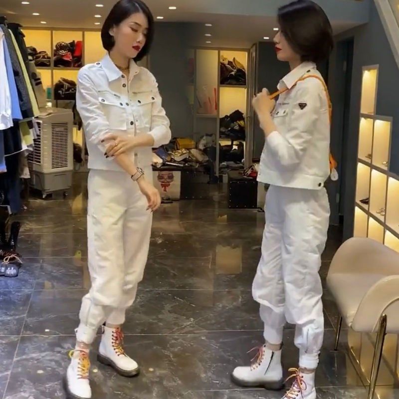 网红同款2022春季新款时尚洋气纽扣外套显瘦百搭束脚工装裤两件套热门设计联盟服务商